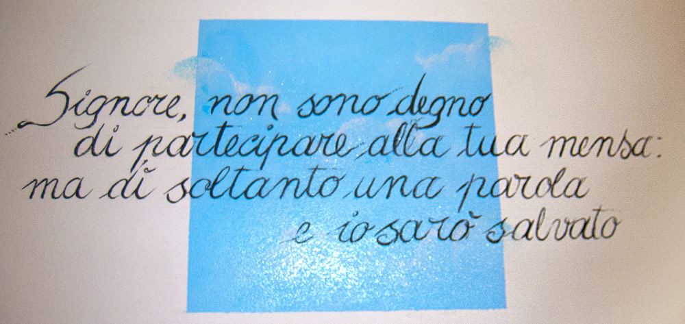 Decorazione murale lettering mistico su cielo - Acrilico e pastello cm. 45 x 100
