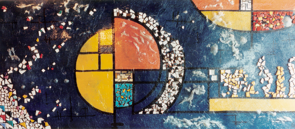 Senza titolo - progetto grafico Lella Parmigiani- vernici, resina epossidica, piastrelle - cm. 100 x 230