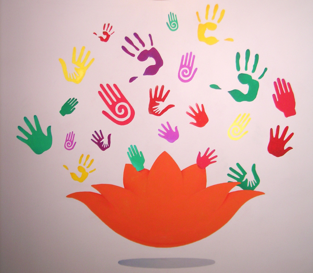 Murale mani e loto - Acrilico e pastello cm. 150 x 140