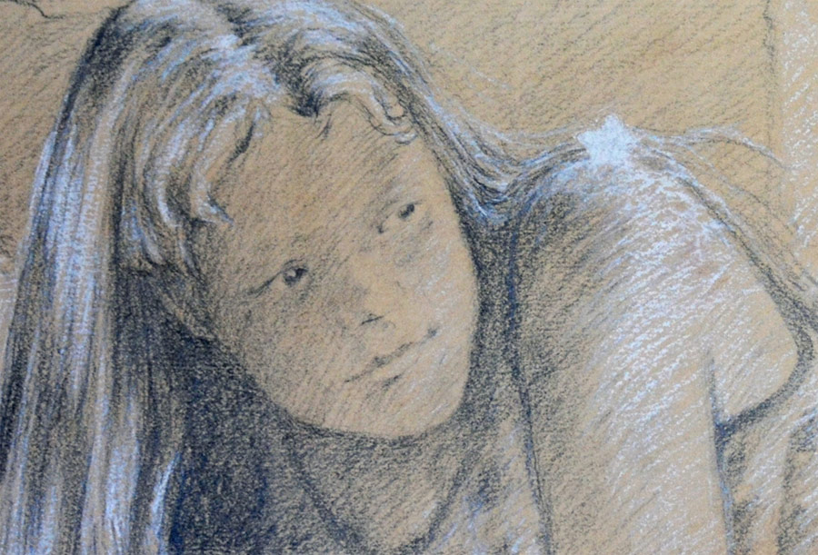 Anna. Grafite, gesso bianco e tempera su cartone tinto. cm. 35 x 50