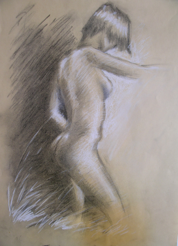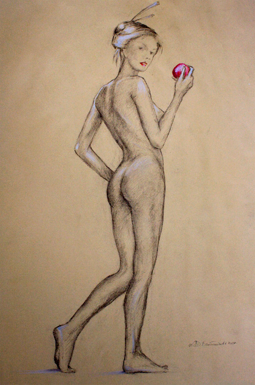 Ritratto con la mela - Carboncino e gessi morbidi su carta da spolvero - cm.70x100