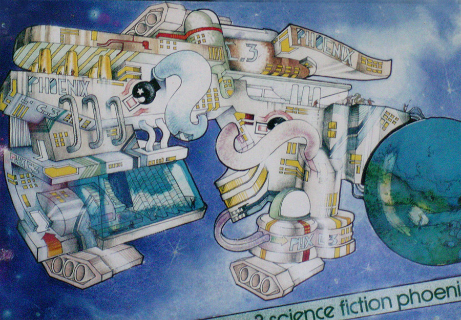 Phoenix ship - Marker, pantone marker, pastelli, gessi su cartone liscio - cm. 33 x 48